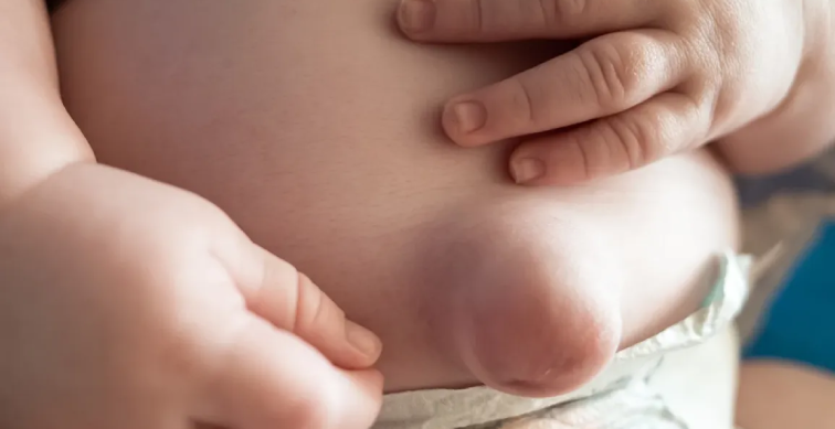 • Visible Bulge: The most noticeable symptom is a small bulge or lump near the belly button. The bulge may become more prominent when coughing, crying (in infants), or during activities that increase intra-abdominal pressure, such as lifting.